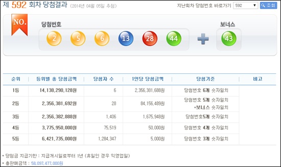 로또592 1등 당첨번호 발표…1등 당첨금은 얼마?