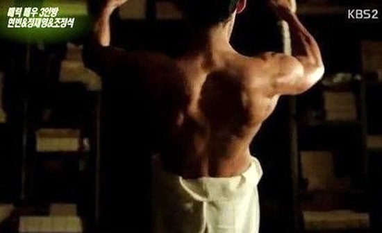 | ▲ 영화 '역린' 중 현빈 등근육/KBS 연예가중계 캡처 | ||