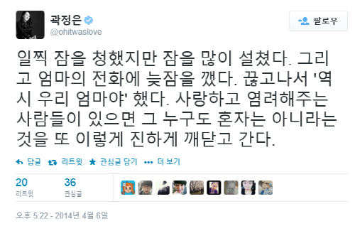 | ▲ 곽정은은 트위터를 통해 악플러 일침에 위로를 건넨 네티즌들에 감사를 전했다. | ||