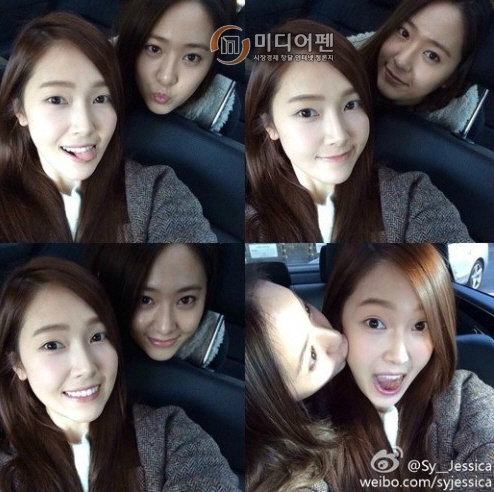 특히 마지막 사진에서는 제시카의 볼에 입을 맞추는 크리스탈의 모습과, 깜짝 놀란 듯한 제시카의 표정이 보는 이들의 미소를 자아낸다.
