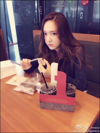제시카는 지난 8일 자신의 웨이보에 일상 사진 한 장을 올렸다. 사진에서 제시카는 한 커피숍 테이블 의자에 혼자 앉아 빵에 치즈를 바르며 '얼음공주' 표정으로 카메라를 응시하고 있다.