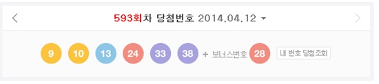 12일 진행된 제593회 나눔로또 추첨결과 1등 당첨번호는 9, 10, 13, 24, 33, 38로 결정됐다. 2등 보너스번호는 28이다.