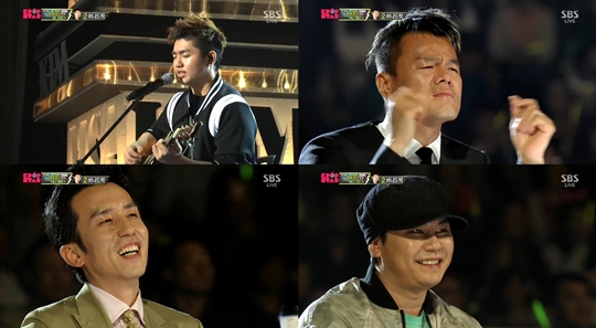 | ▲ K팝스타3 샘김, 전설의 함춘호 기타로 스팅의 완벽한 무대 선봬/SBS방송 캡처 | ||