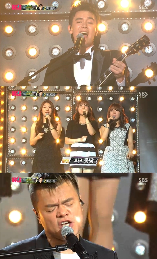 | ▲ K팝스타3 김기련, 박진영, 권진아, 짜리몽땅, 피터한과 환상의 하모니이룬 콜라보무대/SBS방송 캡처 | ||
