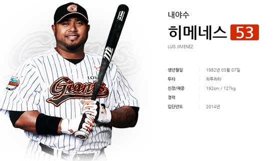 | ▲ 루이스 히메네스/롯데자이언츠 홈페이지 캡처 | ||