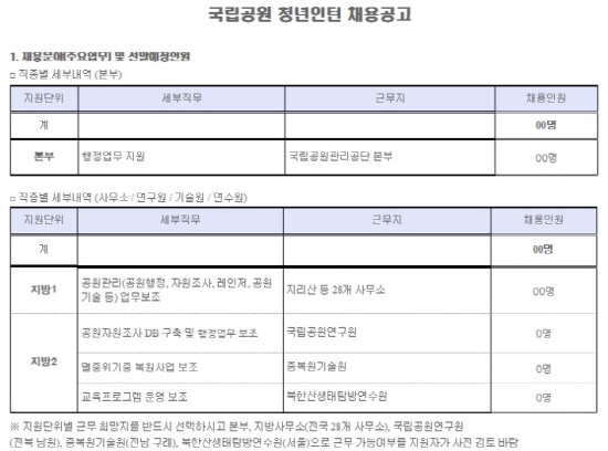 | ▲ 국립공원 청년인턴 채용 공고 | ||