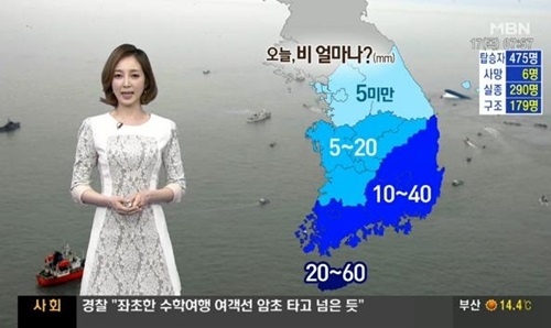 17일 오후부터 전국에 비 소식이 있다. 특히 남부지방에는 이날 오후 최대 40mm 강수량과 강풍까지 예고되어 있어 진도 여객선 생존자 수색 및 구조에 난항을 겪을 것으로 예상된다.