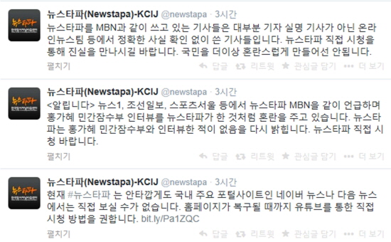 이어 “뉴스타파를 MBN과 같이 쓰고 있는 기사들은 대부분 기자 실명 기사가 아닌 온라인뉴스 팀 등에서 정확한 사실 확인 없이 쓴 기사들입니다. 뉴스타파 직접 시청을 통해 진실을 만나시길 바랍니다. 국민을 더 이상 혼란스럽게 만들어선 안 됩니다”라고 덧붙였다.