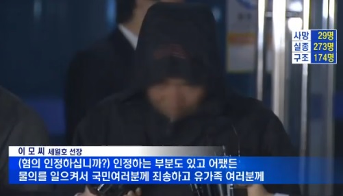 세월호 선장 구속....“구조선 없어서....침실에 있었다” 무책임 변명에 ‘분노’