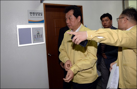 | ▲ '세월호' 여객선 침몰 사고 발생 닷새째인 지난 20일 오후 서남수 교육부장관이 '진도와 안산 특별재난지역 선포' 검토를 위한 현지 관계장관회의에 참석하기 위해 회의실로 들어서고 있다/뉴시스 | ||