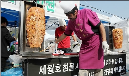 케밥 자원봉사자들이 나타났을 때 다른 자원봉사자들과 실종자 가족들은 생소한 모습의 음식에 당황한 것도 사실이지만 천막 아래 붙은 ‘세월호 침몰 사고 희생자들의 명복을 빕니다. 아울러 실종자들의 무사귀환을 간절히 기원합니다. 형제의 나라 터키’라는 문구가 적힌 플래카드를 보고 이해했다.