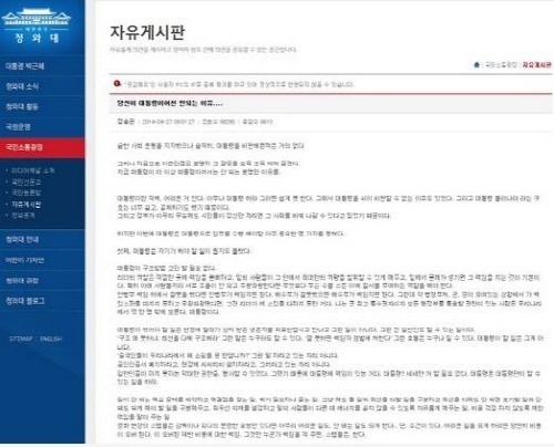 | ▲ 사진출처=청와대 홈페이지 자유게시판 캡처 | ||