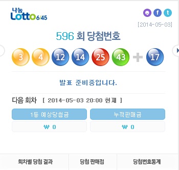 지난 3일 진행된 나눔로또 제596회 추첨결과 1등 당첨번호는 14, 43, 12, 25, 3, 4이며 보너스 번호는 17이다.