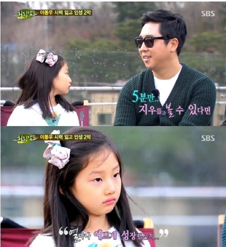 이동우는 현재의 소원은 '단 5분만이라도 딸 지우의 얼굴을 보는 것"이라고 말해 가슴을 울렸다. 이동우는 지우가 태어나기전 난치병 선언을 받고 시력을 잃기 시작해 딸의 얼굴을 보지 못했다.
