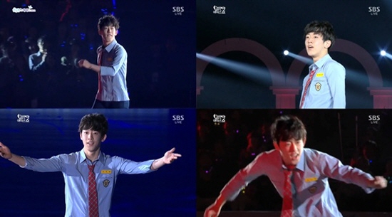 김진서는 점프와 회전을 깔끔하게 펼친 것은 물론 '으르렁'의 안무를 그대로 재현해 많은 관중들의 박수와 갈채를 받았다.