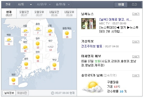 | ▲ 날씨 대체로 맑고 일교차 커/네이버 날씨 캡처 | ||