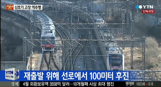 8일 YTN 보도에 따르면 이날 오후 2시35분께 용산에서 출발한 동인천행 1호선 전동차가 경기도 부천 송내역과 부개역 사이에서 신호기 고장으로 100m 가량 역주행했다.