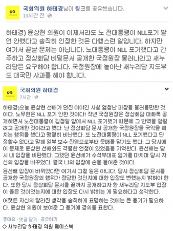하 의원은 지난 8일 자신의 페이스북에 “윤상현 의원이 이제서라도 노 전 대통령이 NLL 포기 발언 안 했다고 솔직히 인정한 것은 다행”이라고 말했다.
