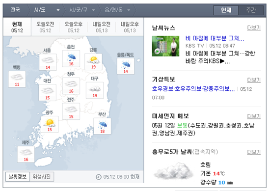 | ▲ 오전부터 점차 맑아져/포털사이트 네이버 웨더아이 캡처 | ||