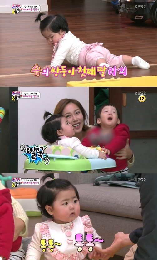 지난 11일 방송된 KBS 2TV '해피선데이-슈퍼맨이 돌아왔다'에서는 방송인 이휘재가 최근 쌍둥이 딸을 출산한 가수 SES 슈와 통화를 하는 장면이 전파를 탔다.