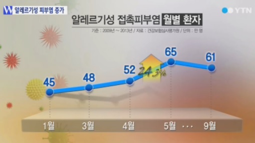 20일 건강보험심사평가원에 따르면 2009~2013년 5년간의 알레르기성 접촉피부염 진료인원을 월별로 분석한 결과, 1년 중 5월에 전월 대비 가장 크게 증가(평균 24.3%, 2013년 30.6%)한 후 8월까지 증가세가 이어졌다.