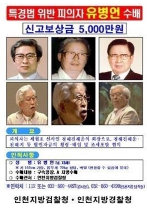 검찰 관계자는 “유 전 회장과 대균씨는 현상수배된 중대 범인”이라며 “시민들과 특히 기독교복음침례회(일명 구원파) 신도들의 적극적인 신고를 기대한다”고 말했다.