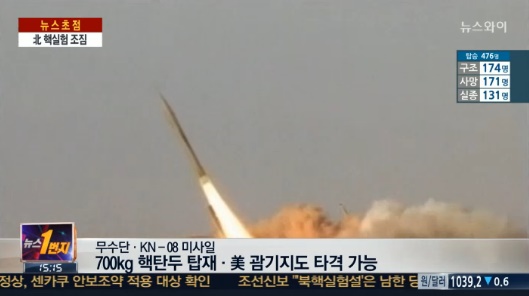 | ▲ 북한 미사일 발사 장면/뉴스와이 방송 캡처 | ||
