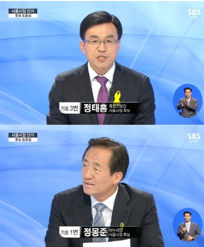 | ▲ 서울시장 토론회 정몽준 정태흥/사진=SBS 방송 캡처 | ||