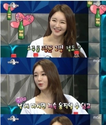 이날 MC들은 평소 술을 잘 마시는 것으로 소문난 강민경의 주량을 물었다. 이에 강민경은 주저없이 "소주 두 병 정도다. 그 이상 마시면 내가 술을 마신다는 느낌이 아니다”라고 말했다.