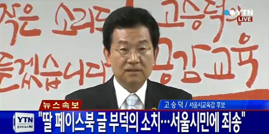고승덕 서울시교육감후보는 장녀 희경씨가 SNS 사엥 올린 글에 대해 “고(故) 박태준 전 포스코 회장의 아들과 문용린 후보의 야합에 따른 것 아닌지 의심하고 있다”고 주장했다.