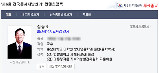 | ▲ 설동호 대전교육감 후보, 2위와의 격차 16.1%포인트로 선두권/온라인 포털사이트 | ||