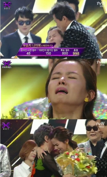 최종 1위로 자신의 이름이 호명되는 순간 눈물을 참지 못한 나미애는 "트로트의 발전을 위해서 큰 상을 주신 것 같다"면서 "최선을 다해서 트로트를 알리겠다"고 말했다.