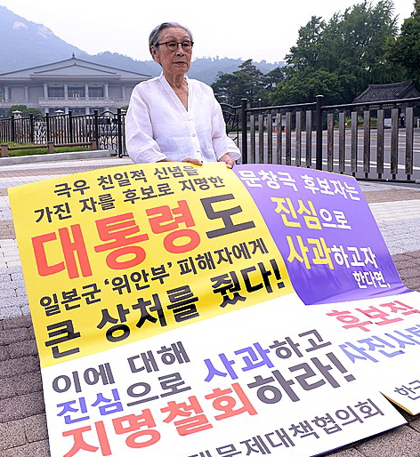 김복동 할머니는 그러면서 문 후보자에 대해 "하다못해 학급 반장직도 못할 사람"이라고 비난했다.