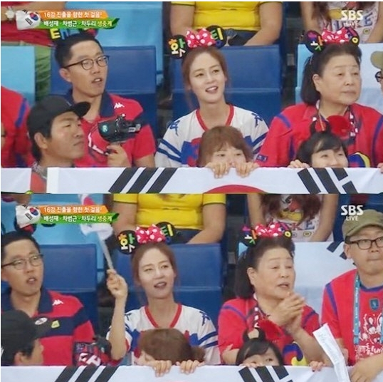 배우 성유리가 프로골퍼 안성현과의 열애 소식이 공개된 가운데 브라질 월드컵 중계 화면에 응원하는 모습이 포착돼 눈길을 끌었다.