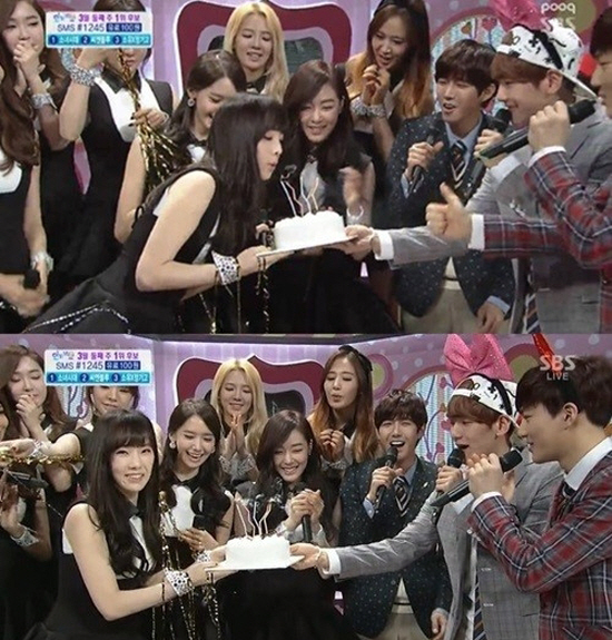지난 3월9일 방송된 SBS ‘인기가요’에서는 생일을 맞은 태연의 생일 축하 파티 장면이 방송된 바 있다.