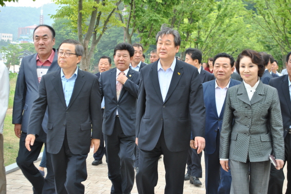 | ▲ 새누리당 대표경선에 출마한 김무성 의원이 경북 구미를 방문해 박정희 생가를 찾아가고 있다. | ||