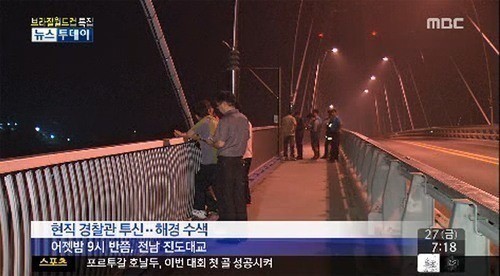 26일 밤 9시 반쯤 전남 진도군 진도대교에서 진도경찰서 소속 A경위가 바다로 뛰어내린 것을 행인이 발견해 경찰에 신고했다.