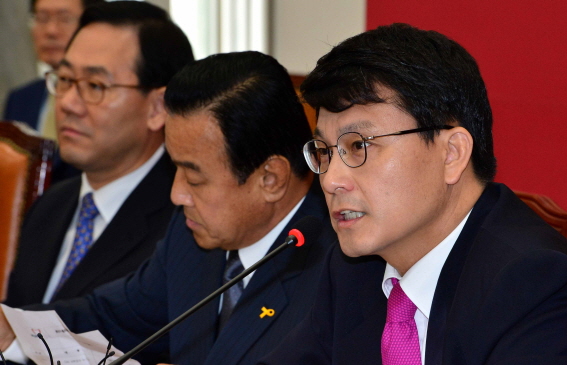 | ▲ 세월호참사와 6.4지방선거, 총리후보자의 연이은 낙마사태등으로 위기에 직면한 새누리당이 '새누리를 바꾸는 혁신위원회(새바위)를 출범시키고 본격적인 개혁에 착수했다. 새바위위원장에는 20대의 이준석 전 대선캠프 비대위원을 임명했다. 비대위원에는 4선의 정병국의원, 재선의 김용태 황영철의원 초선의 강석훈 의원 등 중진과 초재선의원과 국내최고의 SNS전문가인 김철균 전박근혜대선캠프 SNS본부장, 조동원 홍보기획본부장 등 다양한 인사들이 참여했다. 새누리당 윤상현 사무총장과 이완구 원내대표 주호영 정책위의장(오른쪽부터)이 30일 새누리당의 혁신방안을 협의하고 있다. | ||