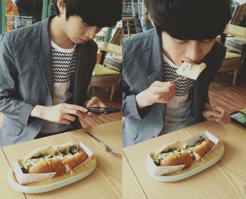 그룹 슈퍼주니어 멤버 김희철이 블로그에 핫도그를 먹는 모습을 공개했다.
