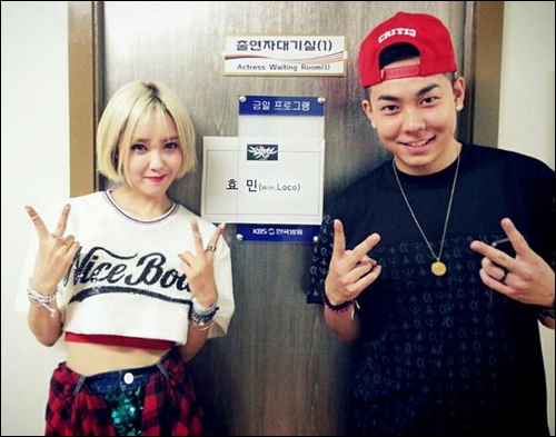 걸그룹 티아라의 멤버 효민과 가수 로꼬가 ‘뮤직뱅크’ 대기실 인증샷을 공개했다.