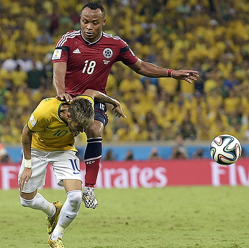 하지만 후반 43분 콜롬비아의 수비수 후안 카밀로 수니가(29·나폴리)의 무릎에 등을 찍혀 그라운드에 쓰러진 뒤 인근 병원으로 이송됐다. 검사 결과 척추 골절 진단이 나왔다.