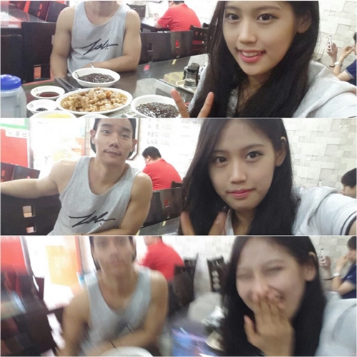 사진 속 허인창은 ‘쇼미더머니3’ 참가자 육지담과 함께 짜장면과 탕수육을 앞에 놓고 다정한 포즈를 취하고 있다.