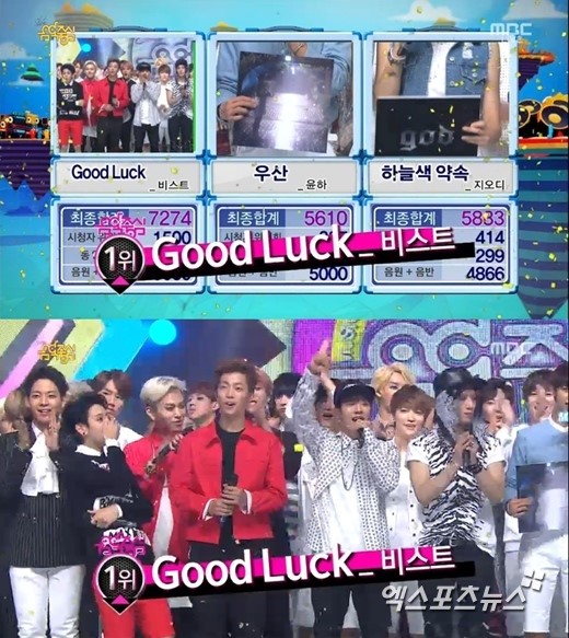 비스트, ‘음악중심’서 타이틀곡 ‘굿럭’로 4주 연속 1위…“뷰티 고마워”