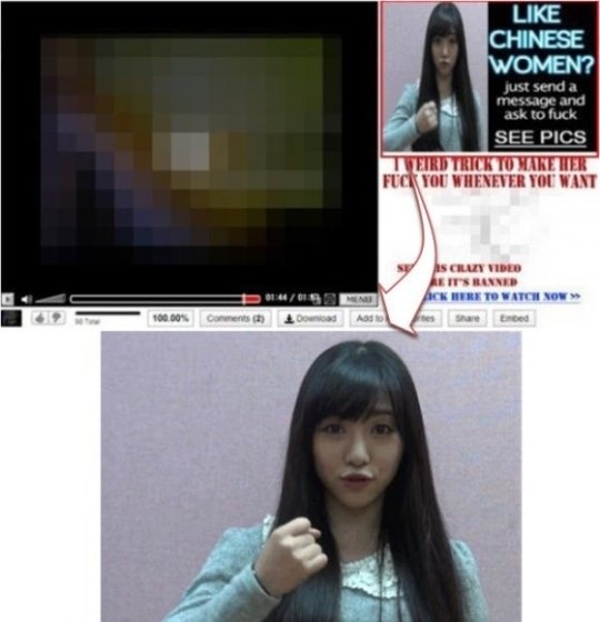 최근 한 해외 성인 사이트에는 동영상 오른쪽에는 “LIKE CHINESE WOMAN?(중국 여자 좋아해?)”이라는 제목으로 민아의 사진이 게재됐다.