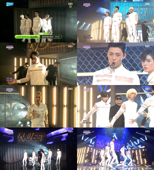 13일 방송된 SBS ‘인기가요’에 출연한 ‘뉴이스트’는 신곡 ‘굿 바이바이(Good Bye Bye) 무대를 선보이면서 여성팬들을 환호케 했다.