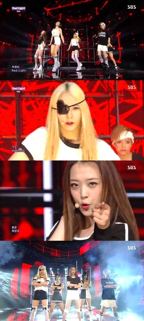 지난 13일 방송된 SBS ‘인기가요’에 출연한 에프엑스가 신곡 ‘레드라이트(Red Light)’를 열창했다.