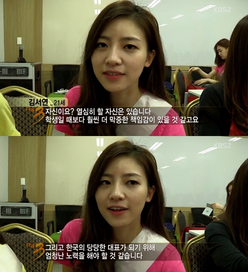 김서연은 미스코리아 도전 자신 있느냐는 제작진의 질문에 “자신이요? 열심히 할 자신이 있다”고 포부를 밝힌 바 있다.