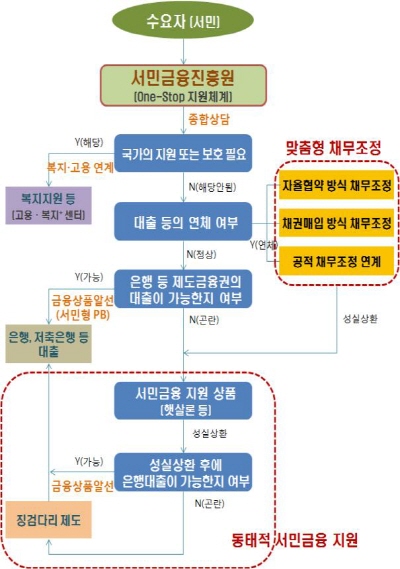 이외에도 금융위는 기관별 지역조직을 통합·연계해 전국에 25~30개의 '서민금융 원스톱 지원체계'를 구축하기로 했다.