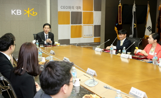| ▲ KB금융그룹은 명동본점에서 사내 직원기자 20명을 초청, 임영록 회장 취임후 두 번 째 CEO와의 대화를 개최했다./KB금융 제공 | ||