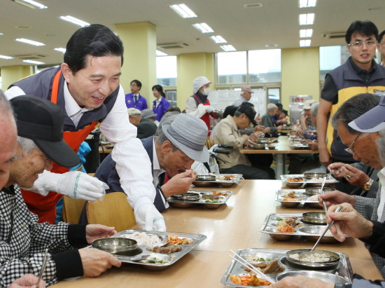 | ▲ 임영록 KB금융지주 회장이 임직원들과 함께 직접 사회봉사활동을 펼치고 있다./KB금융 제공 | ||